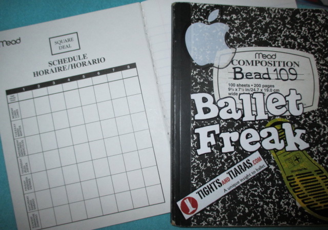 Currently I keep a calendar and a journal. In the calendar, I keep master calendars of all the classes that are available, with teacher info, studio addresses, and phone numbers. I schedule classes and keep track of class cards. I log in performances that I will attend and if I’m traveling to see a performance, I keep information regarding places to take class and ballet shopping in the calendar as well. Right after class, I take notes about the music, exercises, combinations, corrections, or other information that I want to hang on to before it all runs away from my brain. I also keep some sizing information for my ballet gear, particularly about shoes. Flatties can be sized so differently that I actually forget what I wear and which shoe I prefer so I have those kinds of notes written down too.